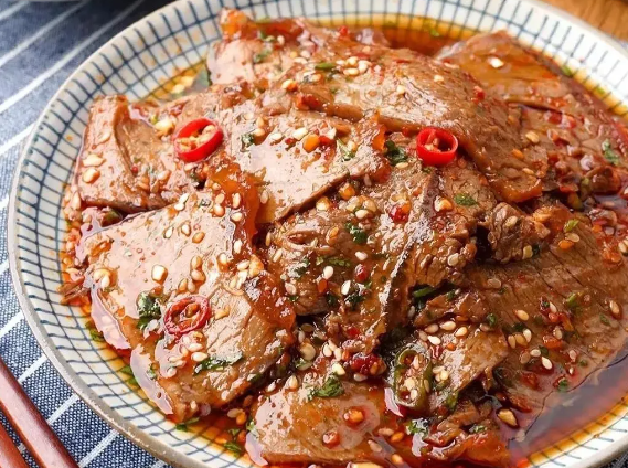 在宁夏,凉拌牛肉可谓是一道家常菜。一般选用牛腱子肉,紧实有嚼劲,肉中带筋,经过凉拌后,香辣爽口,微微弹牙。
